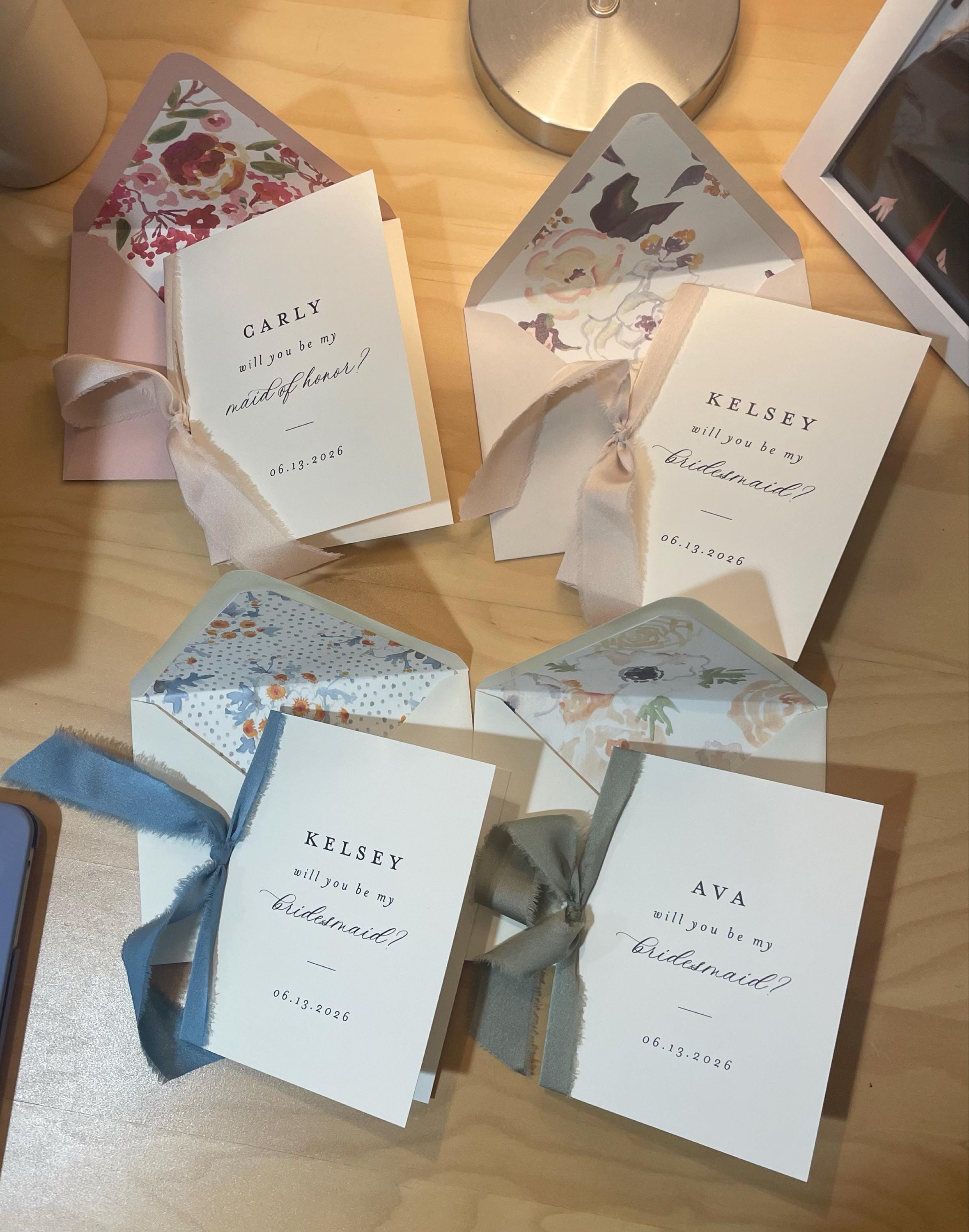 I ordered 6 bridesmaid/maid of honor cards and they are BEAUTIFUL!! I appreciate the owners feedback about which color envelopes to choose so they looked cohesive and nice.