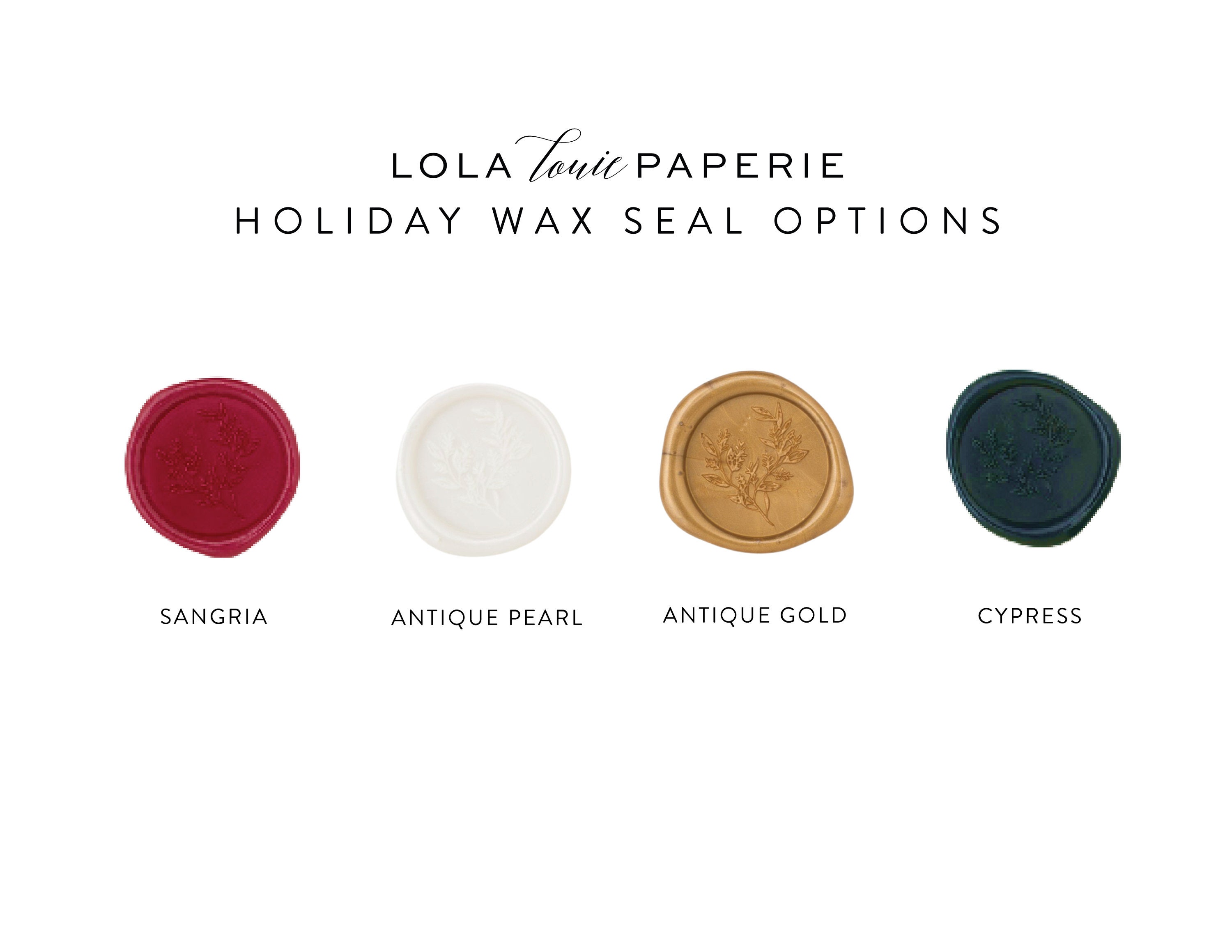 - wax seals only: wax seals provided in your choice of color (comes with double-sided adhesive for you to apply when sealed)